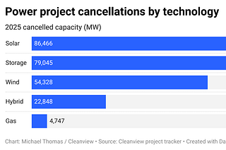 Developers have cancelled 1,891 power projects this year with a combined capacity of 266 GW, with clean energy accounting for 93% of cancellations.
