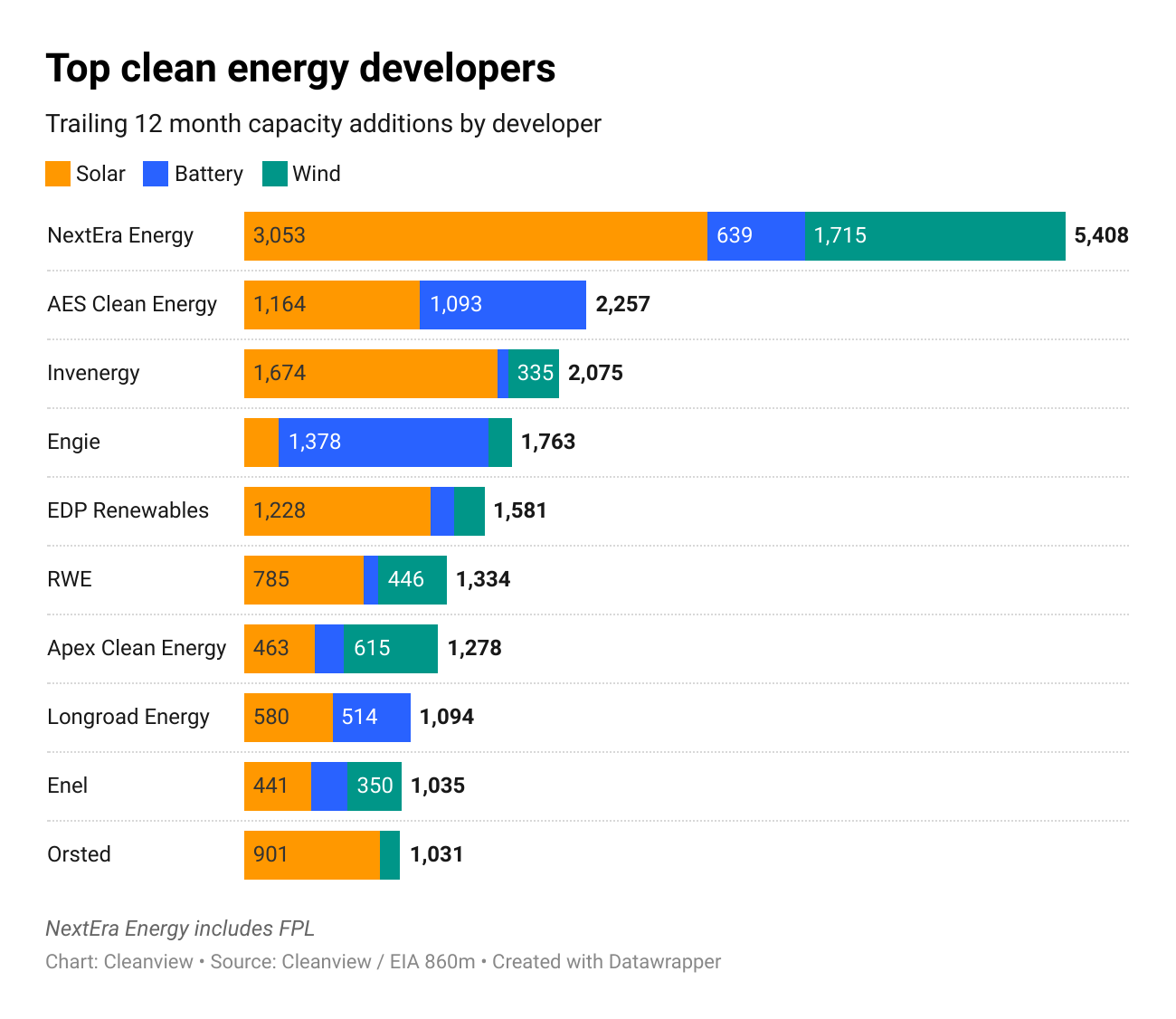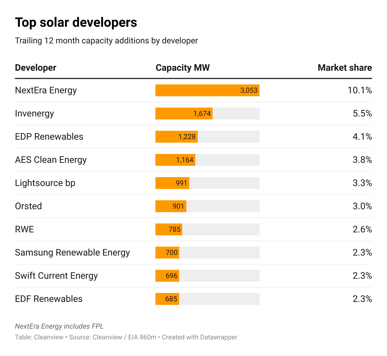 The top solar, wind, and battery developers in the US, according to our latest Developer Benchmark report